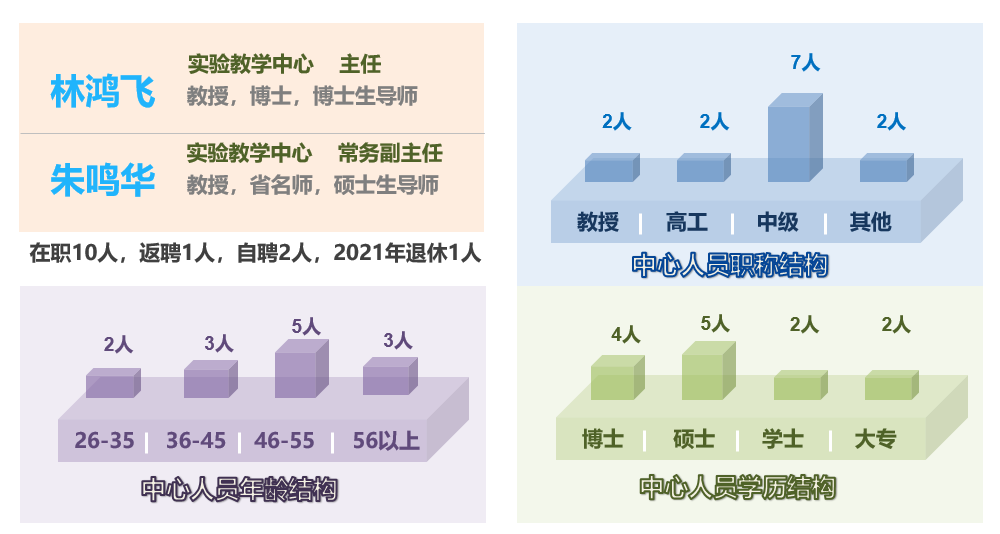 计算机基础实验教学中心目前有教师13人,已经逐渐建成一支勤奋进取、创新和谐的实验教师队伍。。
